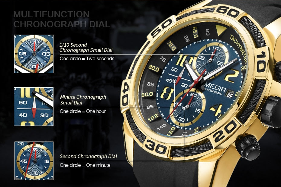 Feature: Auto Date,Stop Watch,Shock Resistant,Water Resistant,Luminous Hands
